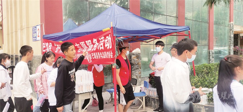圖為巴塘縣志愿者為考生服務。