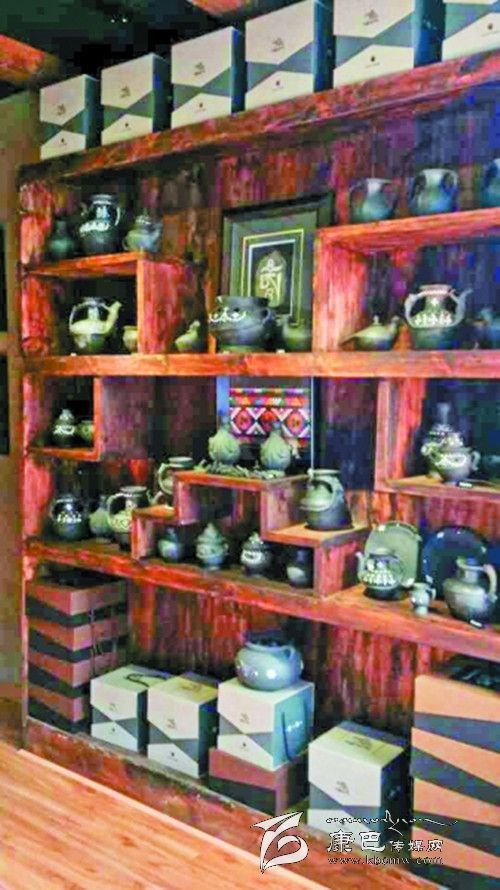 專賣店位于康定情歌廣場(chǎng)右側(cè)。店面古樸簡(jiǎn)潔,店鋪內(nèi),沒(méi)有華麗的裝飾,沒(méi)有鮮亮的色彩,一件件或黑色、或土黃色的土陶產(chǎn)品靜靜地?cái)[放在木質(zhì)陳列架上。產(chǎn)品有傳統(tǒng)的器形,如雙耳罐、香爐、茶壺等,又有新研發(fā)出的器形,如茶具、餐具、筆架等等。產(chǎn)品在將傳統(tǒng)工藝與現(xiàn)代工藝巧妙結(jié)合的基礎(chǔ)上,還融入了藏族傳統(tǒng)文化,民俗文化、宗教文化、吉祥文化等元素,以其拙樸典雅的造型向人們?cè)V說(shuō)著“阿西土陶”悠久的文化內(nèi)涵與歷史淵源。