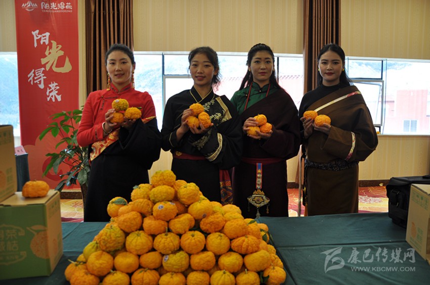 圖為得榮推銷生態(tài)藏桔。