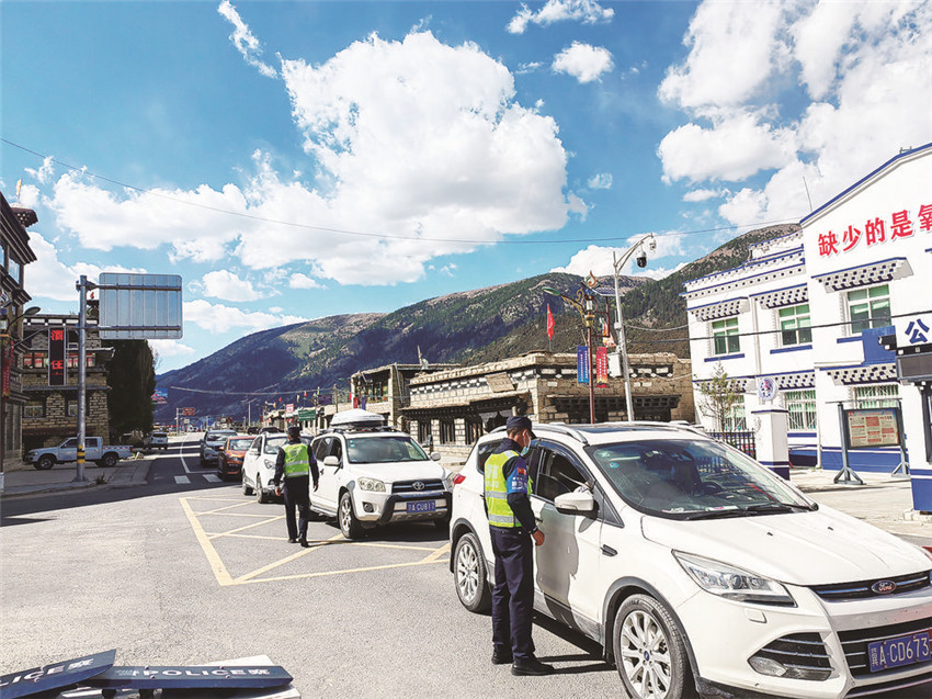 在巴塘縣公安局竹巴龍派出所,21名民輔警負(fù)責(zé)從西藏返川人員的查緝和疫情防控。每天對300多輛車和600余名旅客進(jìn)行測溫、查健康碼、行程卡,協(xié)助開展核酸檢測等,他們不敢有半點(diǎn)馬虎。所長居勉表示,嚴(yán)格按照州、縣防控要求,大家對所有車輛進(jìn)行編號排隊,實(shí)行首尾車制統(tǒng)一護(hù)送至縣城集中隔離點(diǎn)?!耙咔殛P(guān)鍵時刻絕對不能掉鏈子,干工作必須要認(rèn)真負(fù)責(zé)?!本用阊a(bǔ)充說。