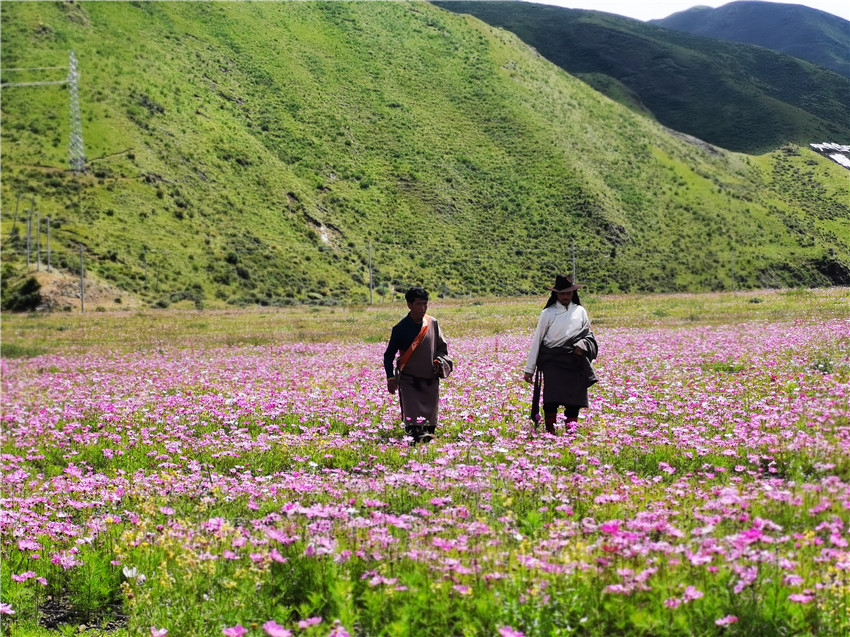 溫江援建的洛若金礦修復(fù)工程(人工飼草基地),使曾經(jīng)的荒地變身花海。