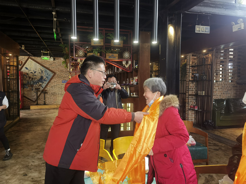 向退休職工敬獻哈達。