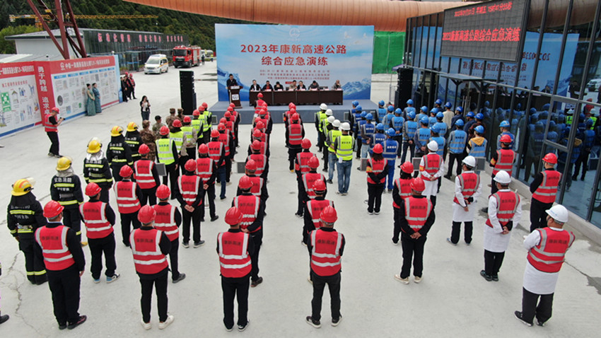 “立即組織施工人員進(jìn)行疏散和警戒,人員不得盲目進(jìn)洞施救……”9月1日,一場(chǎng)隧道坍塌事故綜合應(yīng)急演練在G4218康定至新都橋高速公路項(xiàng)目康定隧道建設(shè)工地舉行。演練模擬隧道施工時(shí)突發(fā)坍塌、工人被困,搶險(xiǎn)人員在指定時(shí)間內(nèi)趕赴事故現(xiàn)場(chǎng),實(shí)施應(yīng)急救援處置。