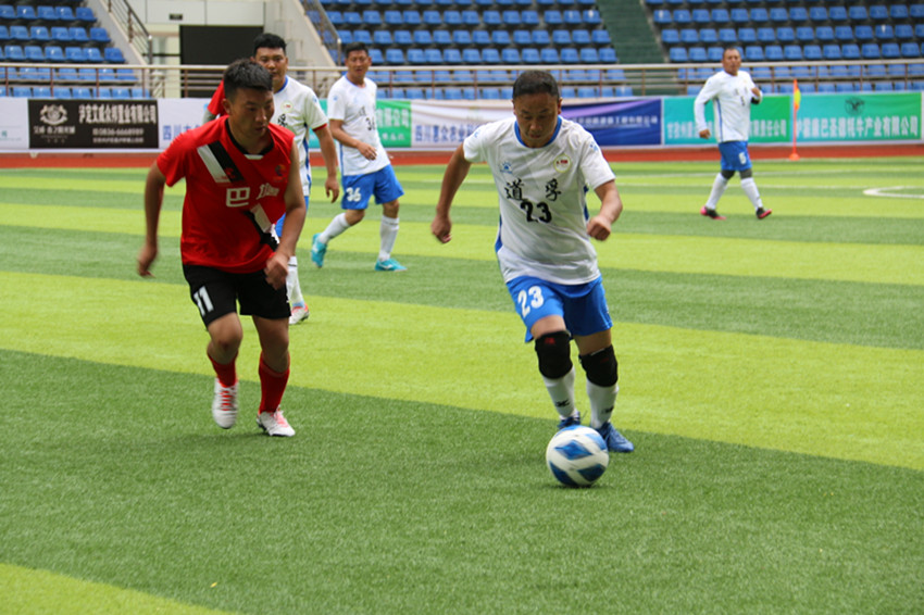 在下午的總決賽中,球場的氣氛被推向了最高潮,雖然小雨淅瀝,但球員和球迷的氣氛依舊不減,康定隊和甘孜隊都極力渴望突破重圍奪得桂冠,登上冠軍寶座。在上半場比賽中,雙方球員頑強拼搏,積極進攻,嚴密防守,為本屆運動會足球賽的最后一場比賽全力以赴。在屢次界外球與定位球之后,裁判哨聲響起,上半場比賽結束,比分仍然定格在0:0。
