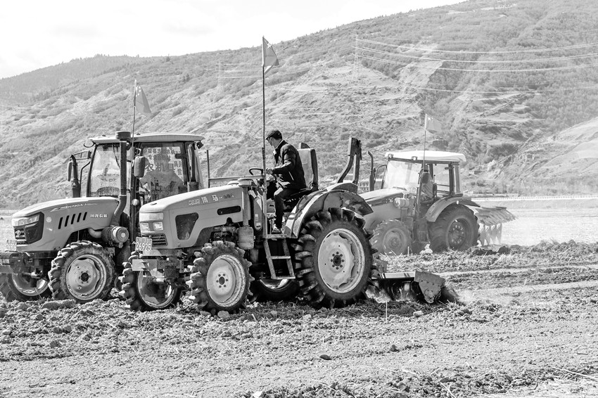 爐霍縣青稞全程機械化作業(yè),大型農(nóng)機具在農(nóng)機手熟練操控下,旋耕、播種、覆土、鎮(zhèn)壓一次完成。本報資料庫圖。