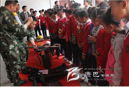 師生們?cè)诳刀h消防中隊(duì)副中隊(duì)長(zhǎng)李勇的帶領(lǐng)下,參觀了消防員宿舍、榮譽(yù)室、軍人俱樂(lè)部等。官兵們“豆腐塊”的被子引起了學(xué)生們濃厚的興趣和強(qiáng)烈的好奇心。不少孩子親自動(dòng)手,嘗試在消防官兵的指導(dǎo)下學(xué)習(xí)疊“豆腐”被子,并進(jìn)行了內(nèi)務(wù)整理。在消防器材展示環(huán)節(jié),師生們走進(jìn)車(chē)庫(kù),中隊(duì)官兵介紹了各類(lèi)消防器材裝備的名稱、性能和使用方法以及各類(lèi)消防車(chē)、隔熱服、避火服、防化服和背戴空氣呼吸器等特勤器材的性能和使用方法。在消防安全課堂上,官兵們向?qū)W生們播放了《校園消防安全警示錄》,并結(jié)合實(shí)際向同學(xué)們講解了學(xué)校防火的重要性、火場(chǎng)逃生自救方法、初期火災(zāi)的撲救、滅火器的使用、如何報(bào)火警等基本消防知識(shí)。在聯(lián)歡活動(dòng)現(xiàn)場(chǎng),消防官兵傾力打造的舞蹈《小蘋(píng)果Style》贏得同學(xué)們滿堂喝彩,現(xiàn)場(chǎng)響起熱烈的掌聲。學(xué)生們帶來(lái)的《吉祥中國(guó)結(jié),美滿中國(guó)夢(mèng)》跳出了小朋友們的美滿幸福之情。文藝演出的最后,消防官兵們還為學(xué)生們帶來(lái)了消防時(shí)裝秀,穿著各式服裝的消防戰(zhàn)士閃亮登場(chǎng),向孩子們講解了這些服裝在各種災(zāi)害事故現(xiàn)場(chǎng)的用途。