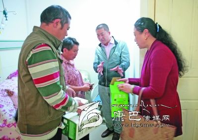 雖然大家都在獻(xiàn)愛(ài)心,但這點(diǎn)錢也顯得杯水車薪。結(jié)對(duì)認(rèn)親小分隊(duì)回到報(bào)社后,立即向報(bào)社黨委作了匯報(bào),第二天中午,報(bào)社派出人員代表黨委、編委會(huì)、結(jié)對(duì)支部和全體職工,到州人民醫(yī)院探望蘇國(guó)全,這才出現(xiàn)了本文開(kāi)頭的一幕。在病房照顧蘇國(guó)全的妻子和女兒看見(jiàn)“親戚”單位來(lái)了人,眼里閃動(dòng)著激動(dòng)的淚光。“這幾天借來(lái)的錢都要用光了,如果停藥就會(huì)有危險(xiǎn)。”蘇國(guó)全的妻子饒大姐說(shuō)。報(bào)社領(lǐng)導(dǎo)安慰她說(shuō),“不要急,我們大家一起想辦法。”并將全社職工捐贈(zèng)的10000元現(xiàn)金交到她的手中。當(dāng)她從報(bào)社領(lǐng)導(dǎo)手中接過(guò)愛(ài)心款時(shí),母女倆的淚水奪眶而出,連聲感謝。