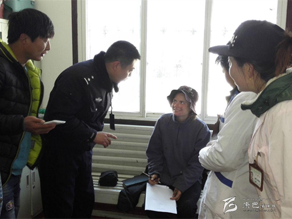 當(dāng)日中午12時(shí),開展完“結(jié)對(duì)認(rèn)親”工作返回桑堆鎮(zhèn)派出所集合的國(guó)保大隊(duì)民警和看守所民警,忽然看見一名神色疲憊的外國(guó)女游客推著自行車,正在派出所門前與民警比劃著什么?有一定英語(yǔ)基礎(chǔ)的民警見狀后圍了上去,主動(dòng)給派出所民警“解圍”。但是,她說的外語(yǔ)并不流暢,交流起來十分困難。經(jīng)過手勢(shì)比劃,加上多方英語(yǔ)對(duì)話,民警得知了她是比利時(shí)人,名叫ILONA,是一名資深的騎游愛好者,已騎自行車游覽了大半個(gè)中國(guó),準(zhǔn)備騎自行車回國(guó)。當(dāng)日正從稻城縣騎自行車出發(fā)前往理塘縣,但到了桑堆鎮(zhèn)后感覺身體難受,體力不支,難以繼續(xù)堅(jiān)持前行,就打算在當(dāng)?shù)卣乙粋€(gè)衛(wèi)生院先檢查身體。比利時(shí)人平時(shí)主要講的是法語(yǔ),所以英語(yǔ)講起來有點(diǎn)不順暢。當(dāng)時(shí),國(guó)保大隊(duì)民警由于有其他要事在身,不得不先行離開,看守所民警蘇適英語(yǔ)水平不錯(cuò),便主動(dòng)帶她到鎮(zhèn)衛(wèi)生院看病。