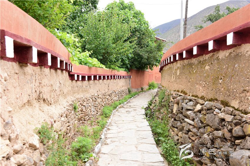 來(lái)到鮮花音樂(lè)小鎮(zhèn),踏著石板鋪成的小道前行,道旁是修葺一新的花臺(tái),半人高的圍墻將一座座錯(cuò)落有致的藏房分隔開來(lái),墻上刻著關(guān)于巴塘弦子、歌卦、藏戲、飲食以及紅色文化的介紹。“十八軍路”、“弦子路”、“藏戲路”……這里的每一條小道都被賦予特殊的名字,展示著巴塘獨(dú)有的民族文化和紅色歷史。