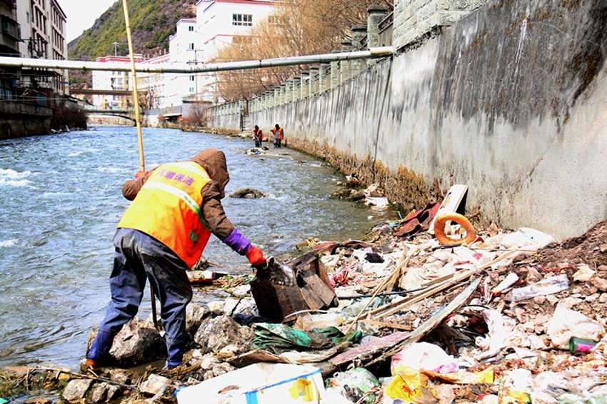 時間倒回至2月8日,一則關(guān)于“康定城區(qū)河道垃圾成堆”的消息在網(wǎng)絡(luò)發(fā)布,引發(fā)輿論嘩然。尚在春節(jié)假期中,相關(guān)部門便組建河道保潔小分隊(duì),出動數(shù)名執(zhí)法人員和8名專業(yè)保潔工人,開始對城區(qū)河道進(jìn)行全面清理。