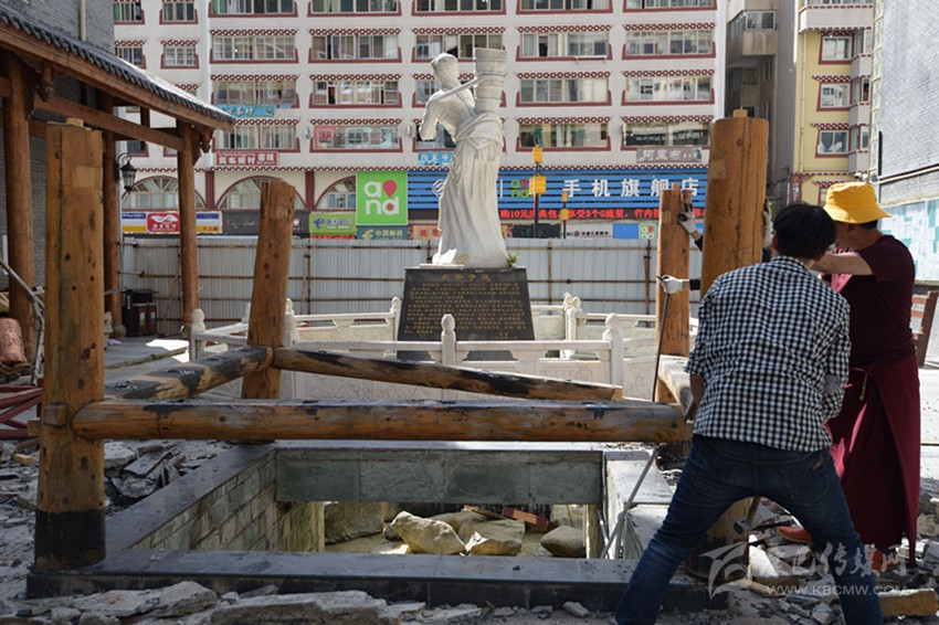75日,夏日艷陽照耀下的康定城中,散步的人們簇擁在水井子藝術(shù)景觀改造提升施工現(xiàn)場議論紛紛。