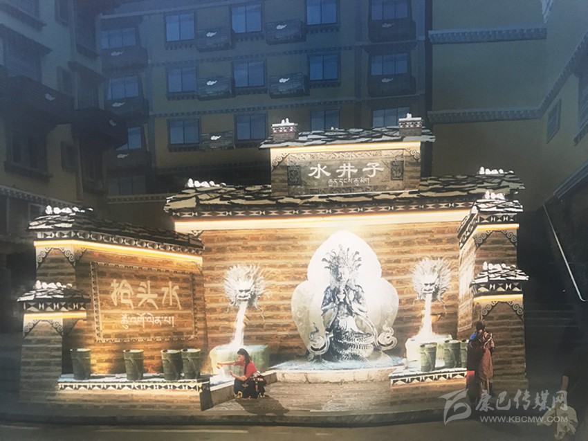 在現(xiàn)場,“水井子”原址已被圍擋封閉施工。根據(jù)設計,此次提升將融入“搶頭水”民族習俗,并結(jié)合互動性祈福、見證愛情的表現(xiàn)手法旨在將水井子打造成為康定城中的體驗式民俗景點。從外觀上看,內(nèi)街水井依然采用開放式外墻,正中神龕放置藏族水龍王塑像,兩邊塑造龍頭,以“二龍噴水”景觀作為新的出水方式,下方池邊則安放傳統(tǒng)背水姑娘雕塑。