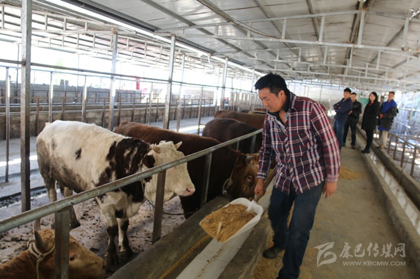 “白巖子村有33戶貧困戶,收入來源單一,如何找到一條可持續(xù)發(fā)展致富的產(chǎn)業(yè)?我和羅萬清、白巖子村支部書記沙瑪十一商量,發(fā)展養(yǎng)殖業(yè)有很好的前景,于是,我們先后4次到廣元、眉山、重慶、內(nèi)蒙、云南等地考察,內(nèi)蒙張北市場西門塔爾肉牛日成交量在200頭以上,一年便可出欄,而且重達1000多斤,如果養(yǎng)殖一年半可達1500斤,一頭牛就可賣一兩萬元。在銷售方面,重慶豐都光明食品貿(mào)易有限公司每天需求量在100頭以上,還可簽訂長期上門收購合同,根本不用擔心市場銷路。”王長明說,煙袋鎮(zhèn)山草、桔桿、豆草、麥草等飼草資源相當豐富,養(yǎng)殖西門塔爾肉牛的優(yōu)勢得天獨厚。20168月,合作社成立,白巖子村33戶貧困戶以土地折資、小額信貸等方式入股,本金由合作社歸還,村民零風險,還可以分紅?;亟ǔ珊螅献魃缫淮涡再徺I了208頭西門塔爾肉牛。目前,中國的牛肉40%依靠進口,而內(nèi)蒙張北市場又可以源源不斷地提供種源。正是看中了西門塔爾肉牛的巨大市場潛力,合作社建設(shè)了3800平方米的養(yǎng)殖基地。100個平方米的圈舍可養(yǎng)30頭肉牛。合作社準備在3年內(nèi),西門塔爾肉牛養(yǎng)殖規(guī)模達到1000頭以上,總產(chǎn)值達到1500萬元,對村民的帶動作用將更加明顯,成為村民增收致富的主要支柱產(chǎn)業(yè)。今年6月,33戶貧困戶喜笑顏開,合作社兌現(xiàn)了承諾,每戶村民分紅4000元,共計分紅132000元?!叭馀;旧铣鰴诹?,存量不多,等我們的養(yǎng)殖基地全部建成后,我們還準備給張北市場簽訂購買合同,爭取再引進數(shù)百頭肉牛?!蓖蹰L明信心滿滿地說,首批肉牛出欄,在養(yǎng)殖技術(shù)和管理方面,合作社已經(jīng)積累了一定的經(jīng)驗,具備了進一步擴大養(yǎng)殖規(guī)模的技術(shù)和條件。
