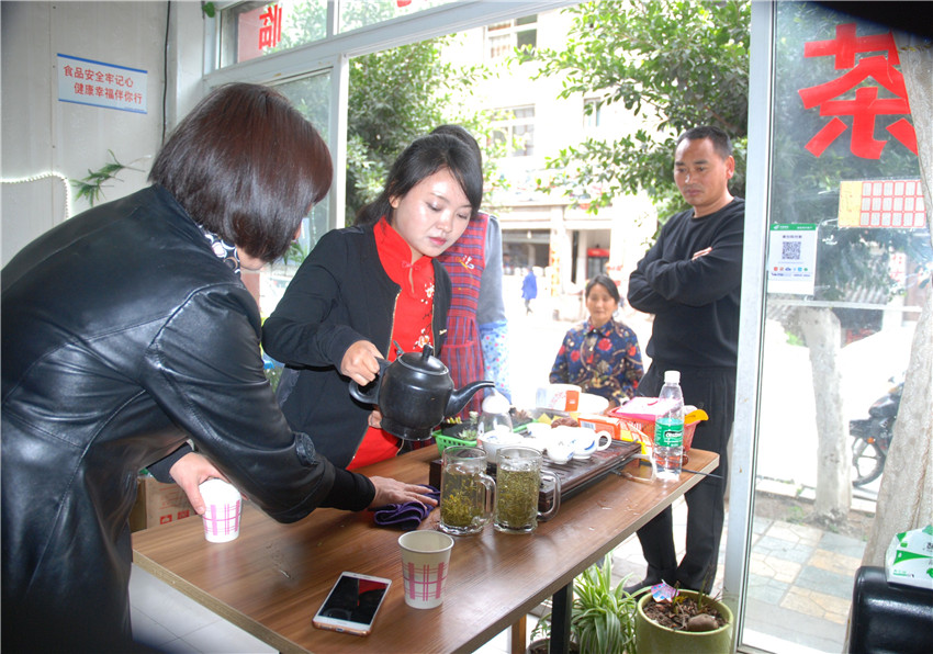 康復(fù)后的朱靈自主創(chuàng)業(yè)開辦茶行。
