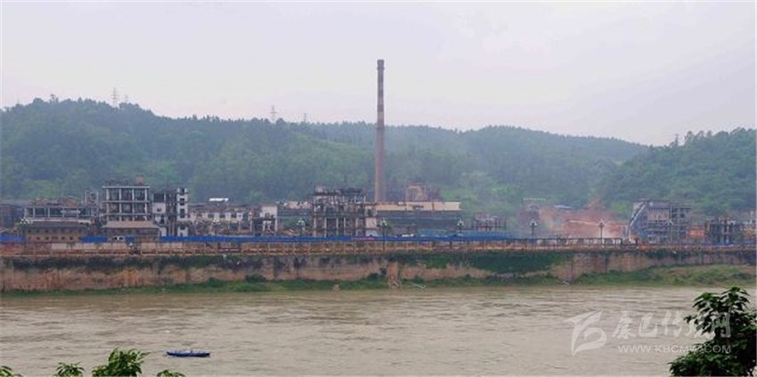 在距離長(zhǎng)江干流零公里處5公里的長(zhǎng)江北岸,宜賓天原公司老廠區(qū)偌大的一片廠房正被拆除(622日攝)。新華社記者胡旭攝