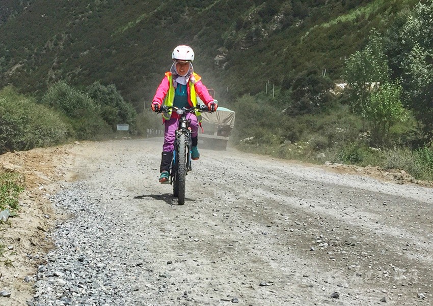 “‘拖兒帶女’騎行進(jìn)藏本不多見,更別提‘一個(gè)年僅8歲的小女孩,騎折疊車挑戰(zhàn)川藏線2050公里了!’就我目前所知,這恐怕是國(guó)道318線上的頭一個(gè)!”看到女兒緊隨其后,不多時(shí)也順利抵達(dá)觀景臺(tái),劉志勇言語間頗有些自豪地介紹著——這位川藏線上迄今年齡最小的女性獨(dú)立騎行者。