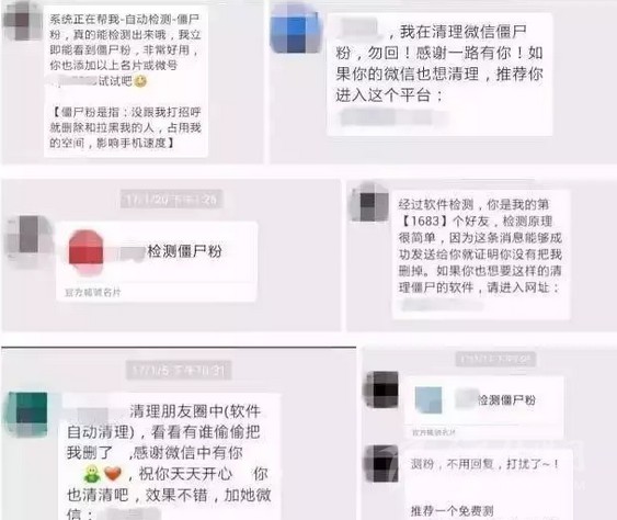 不少網友的微信都會收到類似“xxx你好,清理下朋友圈,效果不錯。真是不清不知道,一清嚇一跳。需要清理可加微信***”這樣的信息,表示可以通過專業(yè)手段找到所有刪除、拉黑、或屏蔽自己的“僵尸粉”,清理微信的聯(lián)系人,可以“釋放手機內存”。