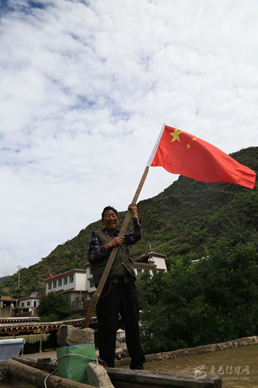 85日早晨7時(shí)50分,鬧鈴響起。巴塘縣蘇哇龍鄉(xiāng)絨岔絨村73歲的藏族老人翁修從臺(tái)柜上拿起疊得整整齊齊的國(guó)旗,登上樓頂,把國(guó)旗穿進(jìn)旗桿后,靜靜地等待著;8時(shí),老人揮舞國(guó)旗,高唱國(guó)歌:“起來(lái),不愿做奴隸的人們……”