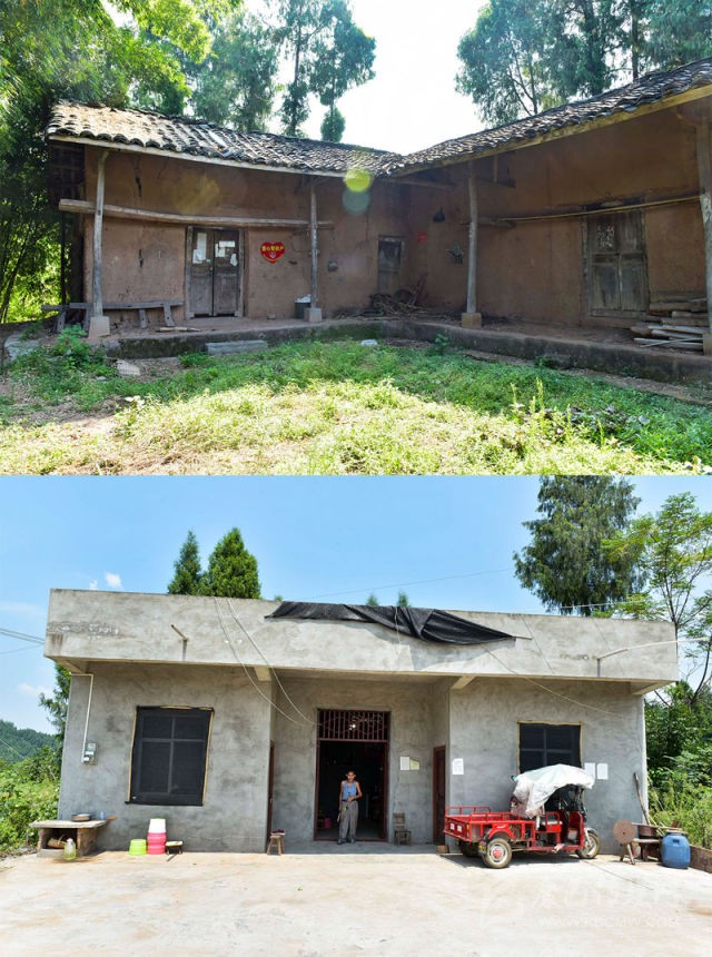 新舊家對比圖。上圖為周強善家以前的舊屋,下圖為現(xiàn)在鋼混結(jié)構(gòu)的新家。攝影 張可凡