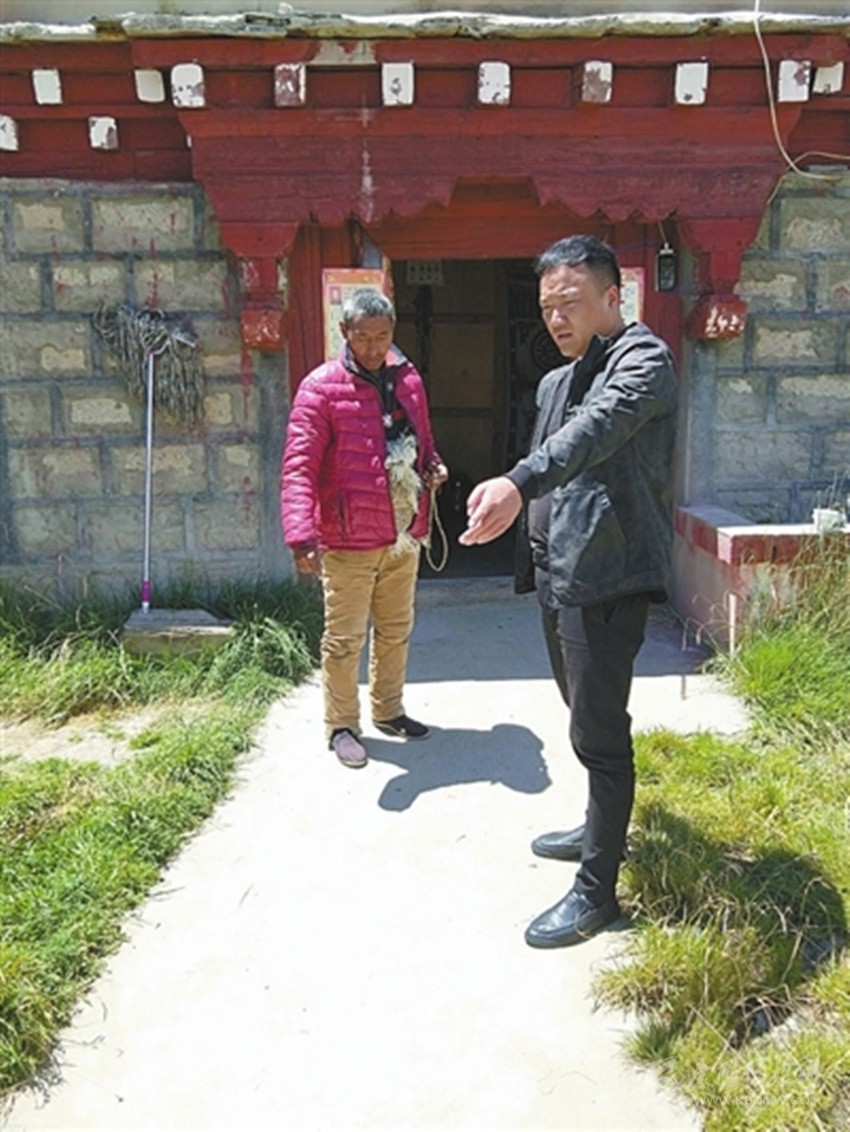2018年9月,因?yàn)槌掷m(xù)降雨造成貧困戶扎西曲扎的房屋滲水開(kāi)裂,成為危房。雷汪告訴扎西曲扎一定要注意家人安全,到處咨詢建房政策,最終通過(guò)縣住建局申報(bào)了援藏資金5萬(wàn)元,為他家重建了新房。