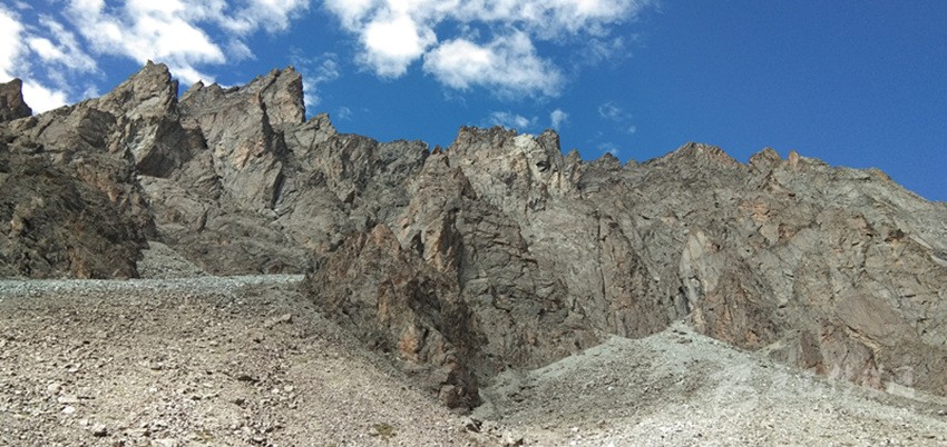 劉剛告訴記者,貝母山腳的長海子(湖泊名)海拔大概在4900米左右,可就是山腳到山頂這短短的800米,兩人足足爬了一個半小時?!疤貏e是離山頂200米的地方,幾乎是懸崖絕壁,二三十米的距離我們走了二十多分鐘,下次去,一定得帶上保險繩?!?/p>
