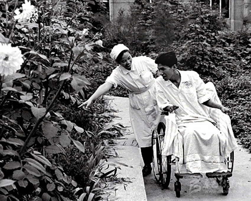 松田宏也在四川醫(yī)學(xué)院附屬醫(yī)院護(hù)士長(zhǎng)陳克芳的護(hù)理下來(lái)到花園里。 資料圖片