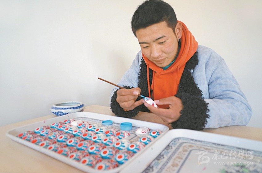 本著自主自愿的原則,教學(xué)班結(jié)束后,65名藏族青年主動(dòng)加入扶貧彩繪實(shí)訓(xùn)班,成為項(xiàng)目的第一批學(xué)員?!皩?shí)訓(xùn)期間不需要交任何費(fèi)用,還包吃住。我對(duì)畫京劇臉譜很有興趣,我們第一個(gè)月學(xué)習(xí)繪畫基本功,第二個(gè)月開始,根據(jù)成品質(zhì)量,就可以計(jì)件得酬勞,學(xué)習(xí)期間我每月能掙500多元?!壁雠f。