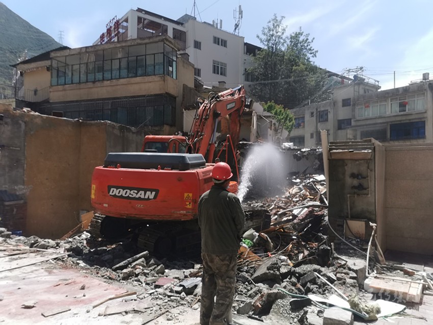 4月15日,在瀘定縣舊城區(qū)改造施工現(xiàn)場,一輛挖掘機(jī)揮舞著長臂,只見一棟破舊的老屋轟然倒地……“拆得好!這些老房子以前緊挨著馬路,拆除后把人行道讓出來了,路更寬敞了,我們走路也更舒心了?!眹^的群眾拍手稱贊。