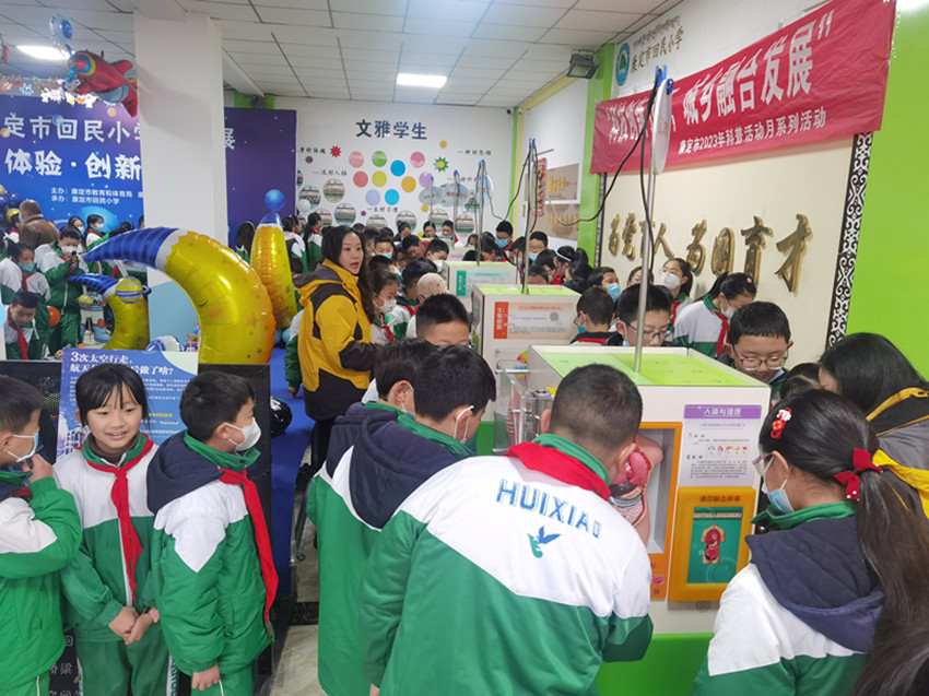 這是回民小學(xué)第三屆校園科技節(jié)活動(dòng)上的精彩一幕,每年的科技節(jié)都是該校全體師生翹首以盼的“重頭戲”。今年的科技節(jié)以“逐夢(mèng)九天,強(qiáng)國有我”為主題,由康定市教體局、康定市科協(xié)主辦,回民小學(xué)承辦,希望學(xué)生們能夠在科技實(shí)踐、體驗(yàn)和創(chuàng)新中把握未來。