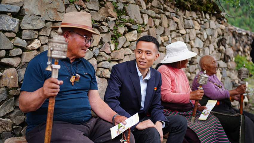 朱楠在理塘縣木拉村走訪群眾,宣傳存款保險服務(wù)。