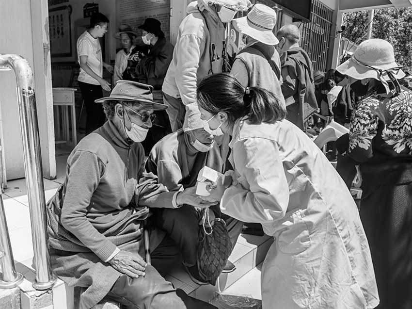 圖為醫(yī)護人員下鄉(xiāng)開展相關(guān)預(yù)防工作。