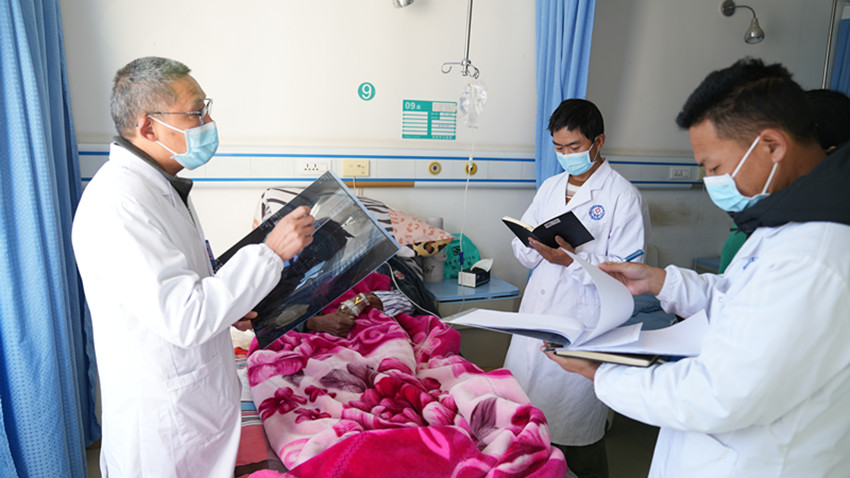 彭勇和彭措是鄉(xiāng)城縣本地的兩名外科醫(yī)生,也是藍忠榮的“徒弟”。為了提高帶徒效率,藍忠榮和他倆簽訂了對口支援“師帶徒”協(xié)議書,明確了個性化培養(yǎng)目標和規(guī)范診療操作內(nèi)容,對常見病多發(fā)病診治、危重癥急癥處理等相關知識進行教學指導。在藍忠榮的指導下,彭勇和彭措先后掌握了肌腱吻合術、橈骨骨折整復、石膏外固定等醫(yī)療技術。