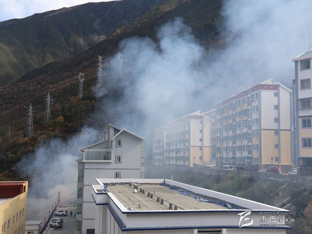 在康定新區(qū)的這片空地上記者看到,本應運走的垃圾,卻被就地焚燒,滾滾濃煙彌漫著整個天空,能見度不足十米??諝庵袕浡瘫堑臍馕?,嗆得過往行人捂住口鼻疾行而過。