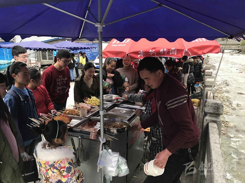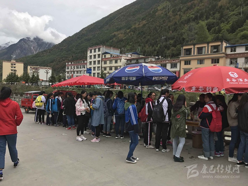 那么真實情況到底如何呢?7日,記者專門來到康定中學走訪調(diào)查。記者搭乘出租車前往學校,途中司機卻回應“康中校門口那一段全是賣炸洋芋、炸雞腿的攤攤,車子根本開不過去,只能提前下車?!碑斢浾卟叫羞^橋到達校門口路段時,雜亂無序而又異常喧鬧的場面立刻映入眼簾。約摸十來家燒烤油炸“流動攤點”上,商販們手中的烤具上下翻飛,幾十名身著“康定中學”校服的學生駐足其間,從校門出入的車輛不斷鳴笛避讓??久娼睢⒄ㄍ炼?、烤雞腿,濃濃的油煙、各種調(diào)料混合的氣味、滋滋的油炸聲……儼然一副“美食街”的火爆景象。