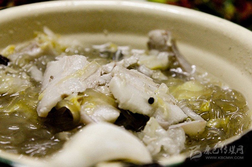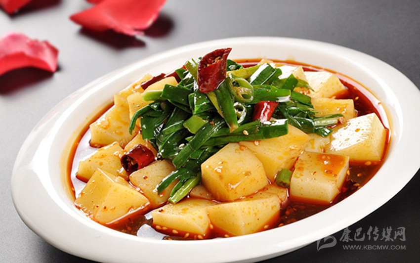 3、攪團(tuán):將清水在鍋內(nèi)燒開后,逐量撒入極細(xì)的玉米面粉,以當(dāng)年新產(chǎn)的小金黃玉米粉為佳,用竹筷攪拌,此時(shí)灶中火要猛,直到攪成糊狀,然后蒙蓋一層新鮮潔凈的芭蕉葉或青菜葉,再蓋上鍋蓋文火蒸2030分鐘,用大碗盛起;鍋內(nèi)打油湯,燒煮酸油菜湯,其油鹽調(diào)料如一般湯羹(酸油菜即以野生油菜莖葉,洗凈,在開水鍋內(nèi)略煮一下,即撈起置于木盆或瓷盆內(nèi),趁熱壓緊覆蓋閉氣,隔夜后即成一種酸味菜,可炒食,亦可煮湯食,其味略酸而鮮美爽口,并有一種特殊香味,本地人歷來(lái)皆愛食之。
