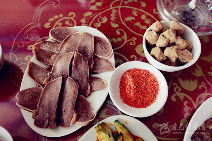 許多藏式餐廳都有蒸牛舌這道菜,其實是水煮牦牛舌,青藏高原特有的牦牛舌相較普通牛舌,口感更為細(xì)嫩、鮮美。煮好的牦牛舌切片,蘸著特制辣椒醬或者椒鹽,在高原上真是美味解饞。