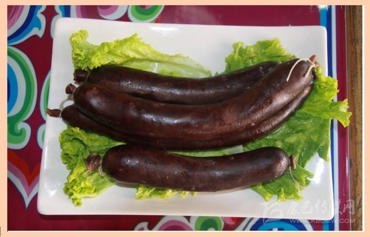 血腸:是將宰殺牲畜的血與玉米面或麥面、蕎面混合在一起,再加以食鹽、花椒面等香料提味,然后將混合物裝進(jìn)洗干凈的牲畜腸里,人鍋煮熟即可。吃的時(shí)候,或蒸或烤:蒸則腸衣柔軟很有嚼頭;烤則腸衣香脆可口。因?yàn)檠c不能長(zhǎng)時(shí)間保存,所以吃血腸的時(shí)間一般在宰殺牲畜的幾天內(nèi)。