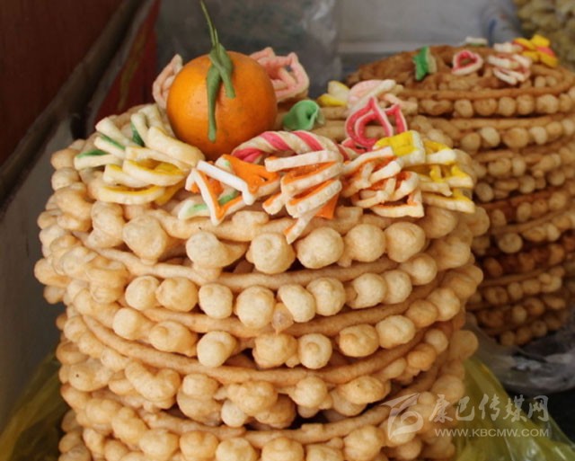 卡賽是藏族人過(guò)年必備的美食。用酥油、菜油、豬油等炸成多種面食,類(lèi)似麻花、油條之類(lèi)。多在藏歷年時(shí)食用。分為耳朵形、蝴蝶形、條形、方形、圓形等各種形狀,涂以顏料,裹以砂糖。既是裝飾神案的藝術(shù)品,又是款待客人的佳肴?!翱ㄙ悺钡钠贩N花色常常成為女主人勤勞、智慧和熱情的象征,在節(jié)日里分外引人注目。