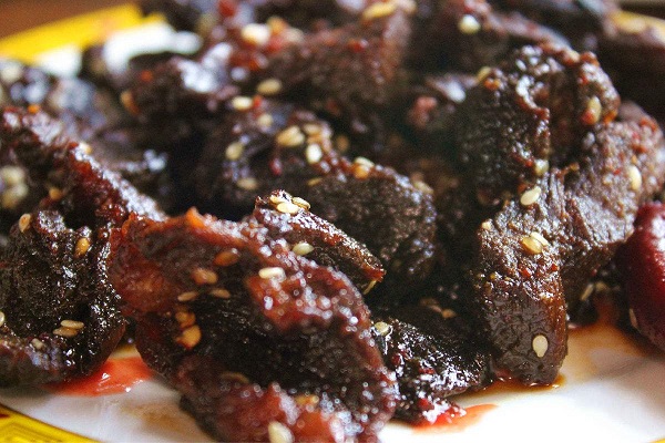 3500米以上地區(qū)這些地方生長著許多野生藥種如貝母,蟲草等,耗牛常食這些藥材,其肉鮮美無比,殺后可炒紅燒,清燉或涼曬成干巴等,其味獨(dú)特,吃耗牛肉在迪慶,實(shí)在是一種享受。并可在市場購買干巴,肉松等作饋贈(zèng)青朋好友的禮品。牦牛肉可以粘辣椒油,味道仍然鮮美??刀ǖ呐H獠粌H有牦牛肉,還有熏牛肉等等,比起其他康定特產(chǎn)更是別具一番風(fēng)味。