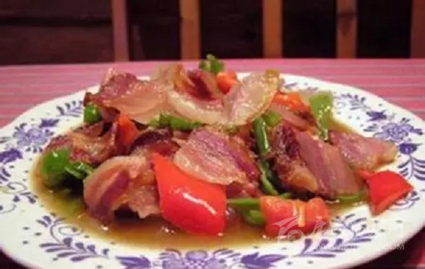 嘉 絨語稱“大古兒”,與香豬腿一樣,豬膘是丹巴的土特產(chǎn)之一。境內(nèi)居住在高山半高山一帶的藏羌群眾家家做豬膘。豬膘就是豬的肥膘做成的,一頭豬砍去四個(gè)“肘 肋”肉,去頭和項(xiàng)圈后,余下的從背梁上剖開,做成兩扇豬膘,在一鍋開水里煮成半熟,取出后,用木棍將其撐開弄直,在露天里凍兩天晚上,待基本成型后掛曬晾干。一般每戶人家在藏房的二樓有固定的房間放肉,在房間內(nèi)搭設(shè)一個(gè)架子,把豬膘平放在架子上,一扇重一扇。家庭富足的每年能積存一定數(shù)量的豬膘,幾年后, 已堆滿一個(gè)房間。豬膘的食用方法各個(gè)地方有所不同,境內(nèi)邊耳鄉(xiāng)一帶一般吃生豬膘,每當(dāng)寨子里有人家蓋房、辦喜事,會(huì)提前做很多火燒子饃饃,切很多塊狀的豬膘;當(dāng)天幫忙的一人發(fā)一個(gè)火燒子饃饃、一塊豬膘肉;豬膘一般不去毛,食用的時(shí)候在滾燙的茶水里浸泡一會(huì)兒,然后用刀將皮毛去掉,然后和著饃饃食用。小金溝 一帶有用豬膘做“墩子”肉(又稱“坨坨肉”)的習(xí)俗,“墩子”肉是“九大碗”中的主菜,其做法是把豬膘切成塊,放上佐料,用文火燉耙,然后一碗一碗舀上桌食用,“登子”肉燉的時(shí)間越長就越香。境內(nèi)其他一些地方普遍把豬膘煮熟切成片和著饃饃食用。