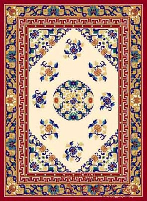 藏毯是植物染色,手工捻線,經(jīng)藝人的精心編織而成。它柔軟、耐用、美觀、大方,又有濃厚的民族特色,對生活在高寒地區(qū)的人們隔潮御寒、保溫取暖有重要作用。因些是長期在牧區(qū)生活所不可缺少的用品。它的品種,有地毯、炕毯、坐毯等。它是在藏族傳統(tǒng)藝術的基礎上,吸收、融合了漢族、印度和尼泊爾宗教藝人精華,形成具有自己獨特的藏族藝術風格的工藝美術品。       傳統(tǒng)藏毯的藝術風格,帶有濃厚的宗教色彩,如佛八寶、暗八仙、國王七寶等。佛八寶即法輪、法螺、寶傘、寶蓋、荷花、寶罐、雙魚、盤花;暗八仙屬漢道教文化即寶劍、寶葫蘆、漁鼓、陰陽板、仙笛、寶扇、花籃、荷花;國   王七寶也稱怵寶,屬印度佛教文化,即方勝、連環(huán)錢、犀角、令牌、象牙、珊瑚、珠寶。還有漢文化的琴棋書畫和梅蘭竹菊等。這些內(nèi)容既展示了人們的勤勞智慧和精神力量,也體現(xiàn)出人們對美好未來的期待、愿望和幻想。藏毯的表現(xiàn)形式以傳統(tǒng)式為主,還有自由式、龍鳳式及隨品種形式不同的構圖形式。色彩表現(xiàn)方面尤為豐富,顏色艷麗、純度高、對比強,色彩構圖穿插靈活,與藏族建筑彩畫的裝飾風格一脈相承。