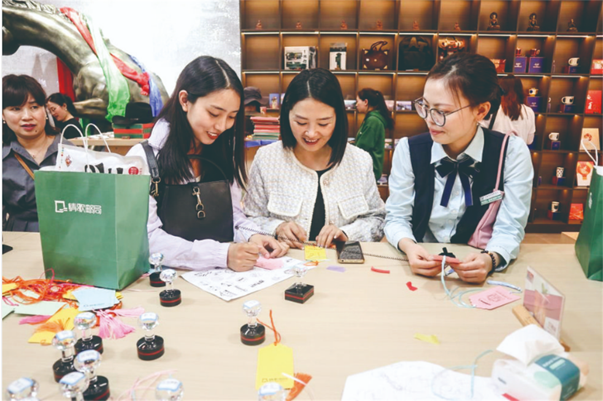 “對(duì)于未能在甘孜一路收集齊全風(fēng)景戳的朋友來說,這里豐富的章戳選擇,無疑能提供一種特別的慰藉方式,讓我們?cè)诜酱缰g領(lǐng)略并收藏甘孜的美好風(fēng)光。”進(jìn)店游客可在專屬打卡地拍照留念,獲取“此生必駕318”、甘孜18個(gè)縣(市)地名等地域特色紀(jì)念章戳。“進(jìn)入情歌郵局就能打卡全甘孜,還可以將來自情歌郵局的祝福和溜溜城的記憶‘郵’回家。”進(jìn)店的游客絡(luò)繹不絕,對(duì)郵局的創(chuàng)新服務(wù)十分滿意。