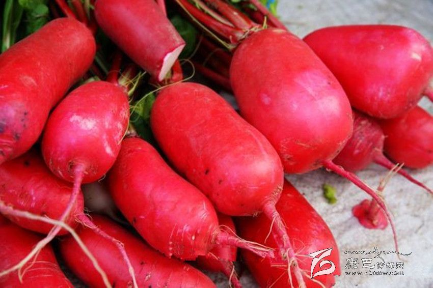 康定縣種植紅皮蘿卜歷史悠久,《康定縣志》(1995年版)記載民國(guó)18年設(shè)于城郊的西康省農(nóng)事試驗(yàn)場(chǎng)及1928年建立的西康省農(nóng)業(yè)改進(jìn)所,都曾對(duì)其作過(guò)引進(jìn)、試種,和園根(蕪菁)、洋芋并列享有康定“三寶”之譽(yù)??刀t皮蘿卜除含葡萄糖、蔗糖、果糖、多縮戊糖、粗纖維、維生素C、礦物質(zhì)和少量粗蛋白外,還含多種氨基酸,淀粉酶含量很高,肉質(zhì)致密,色呈淡綠色,水多味甜、微辣,是著名的生食品種,人稱“水果蘿卜”。