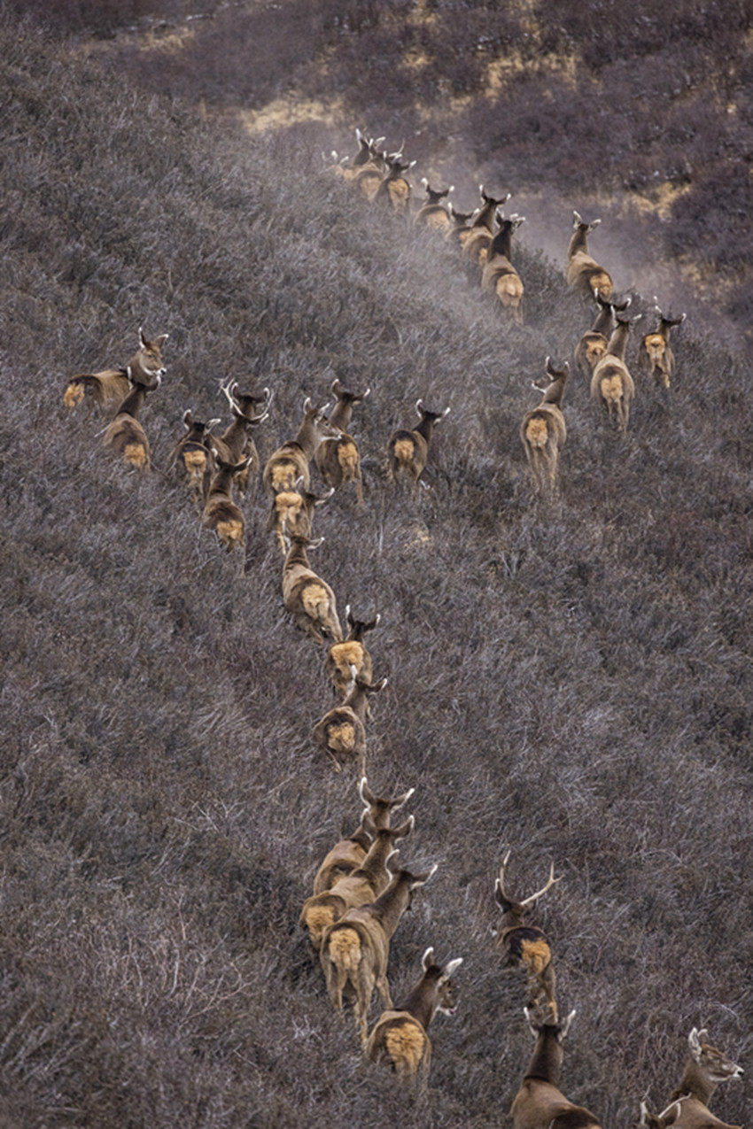 本網(wǎng)訊 3月4日,色達縣攝影協(xié)會網(wǎng)友拍攝到一支由上百只白唇鹿組成的“遷徙隊”現(xiàn)身色達縣洛若鎮(zhèn)塘亞溝。