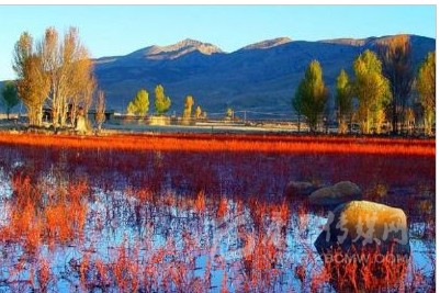 距稻城縣城金珠鎮(zhèn)28公里的桑堆小鎮(zhèn)風(fēng)景綺麗,在公路沿線的牧場開闊平展,河流平緩如鏡。遙望遠(yuǎn)處,在起伏的山巒間散落著村落、牧人、牛羊,呈現(xiàn)一派寧靜祥和的景象。公元1144年前,一世噶瑪巴·都松欽巴覺悟贊譽:“我走遍藏區(qū),來到此地。這里風(fēng)景秀美,牧草豐茂,六畜興旺,佛光普照。我愿在此修建寺廟成就功德”。金秋十月的桑堆紅草灘總是讓你感覺膠卷不夠用?!?/p>